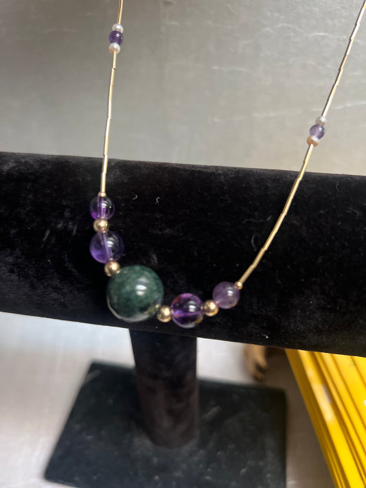 Genuine Guatemalan Jadeite Necklace with Amathyst by Jade Maya