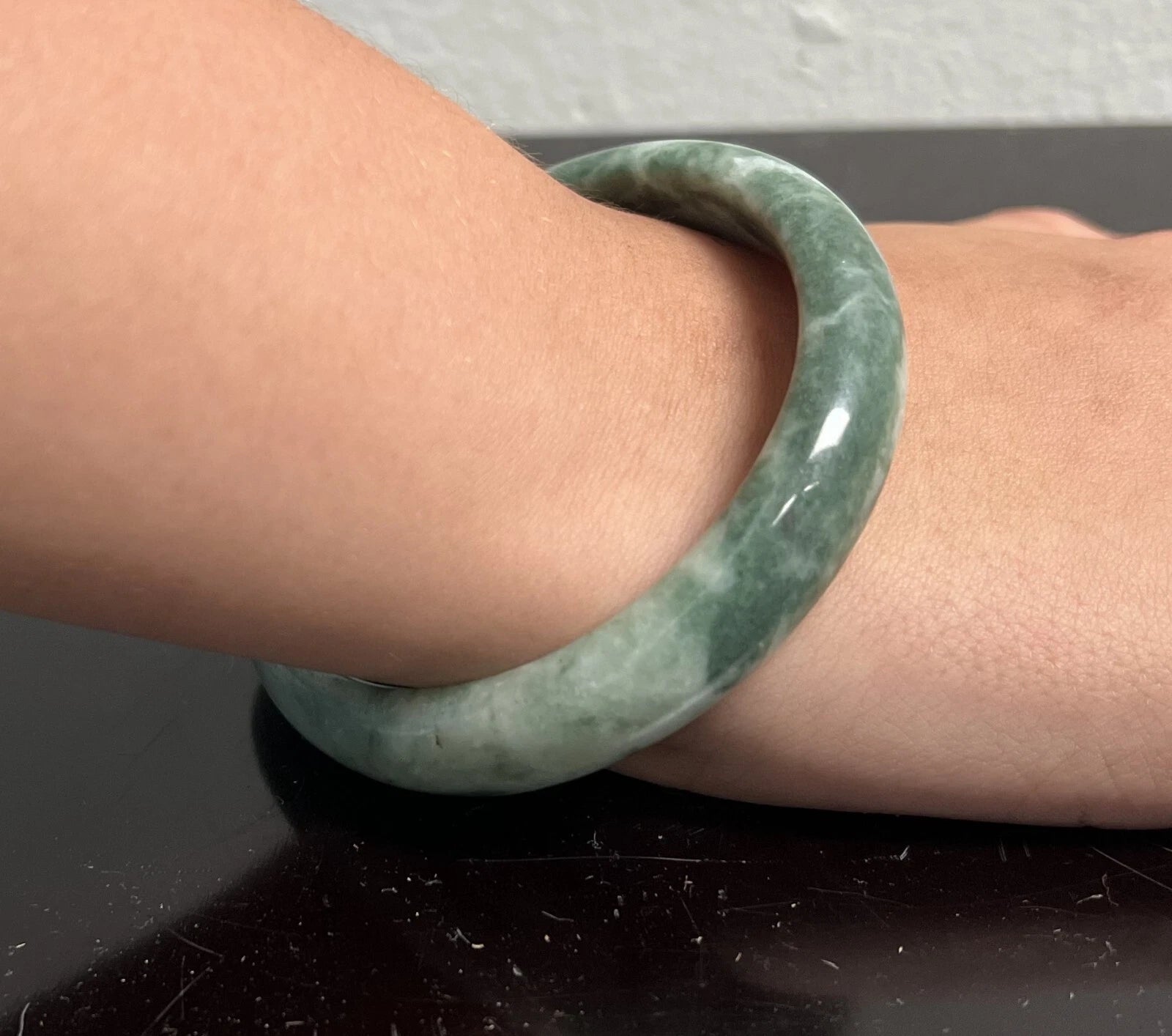 Antigua Guatemala Jadeite Jade Bangle Bracelet Mix of Deeper Vibrant Green Hues